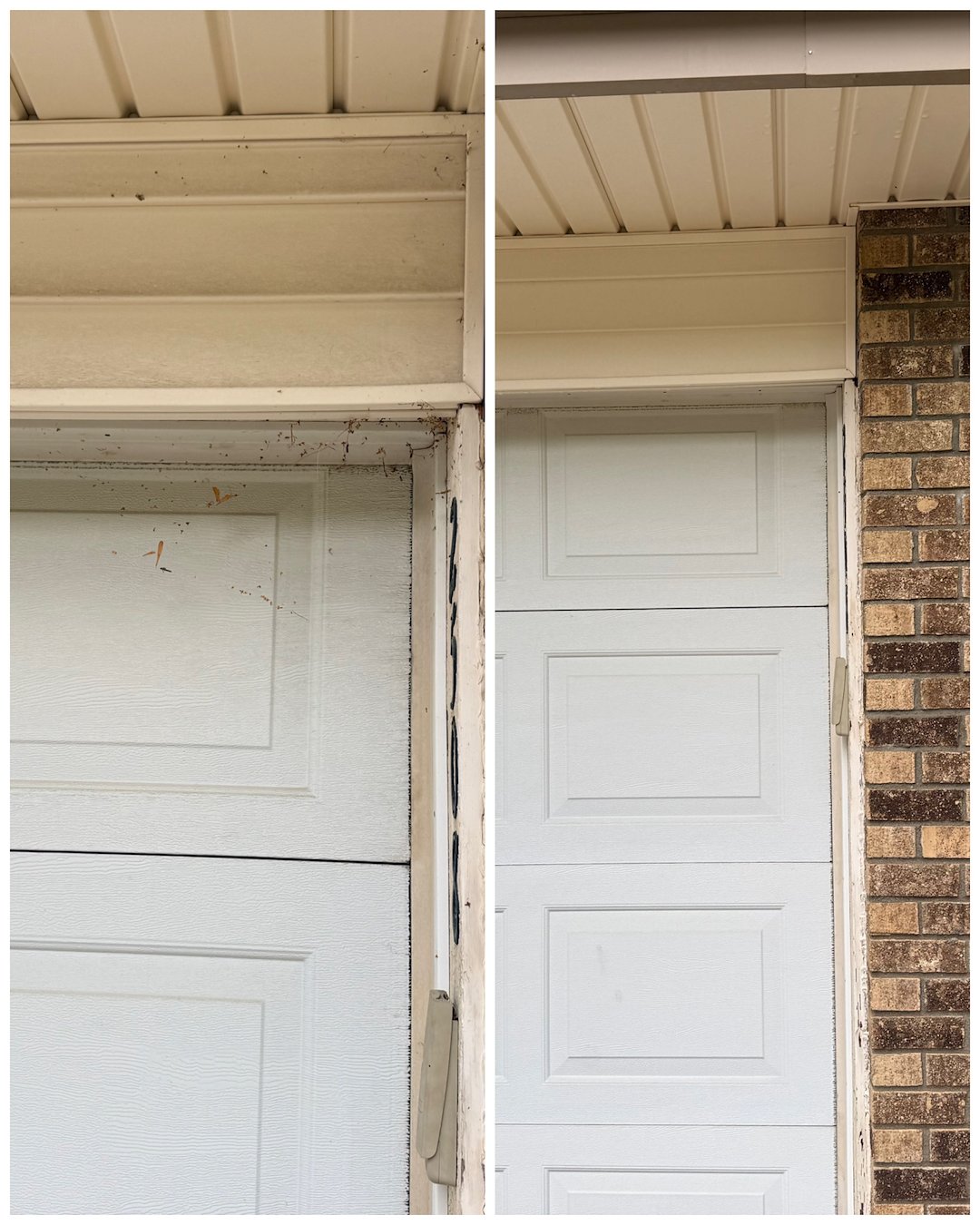 This Bellevue homeowner contacted us because their siding had built-up mildew, algae, and dirt—common issues caused by Nebraska’s humidity and seasonal weather changes. Instead of using high pressure that could damage the siding, we used our soft wash system—a gentle yet powerful cleaning method that safely removes organic growth using specialized cleaning solutions and low-pressure water.