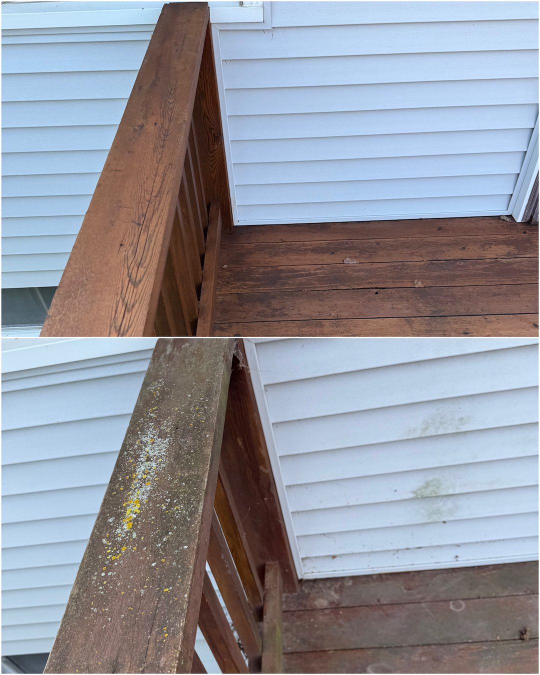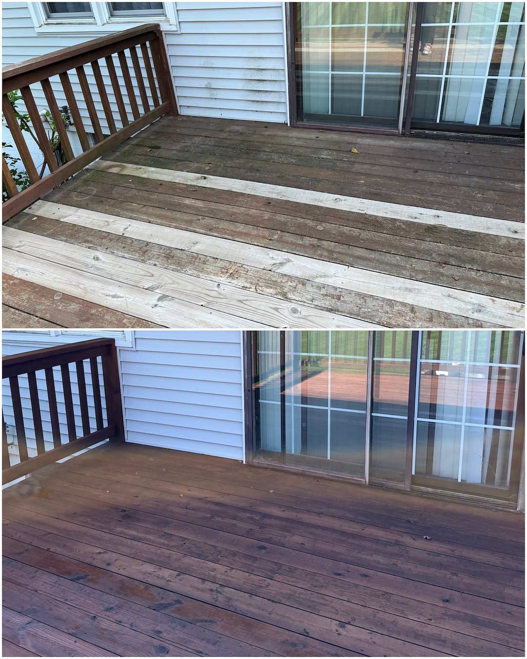 Our veteran-owned team started with a professional deck cleaning and pressure wash to remove years of dirt, mildew, and surface stains. Once the wood was thoroughly cleaned and prepped, we applied a high-quality deck stain and sealer designed to protect the lumber from UV rays, moisture, and foot traffic.